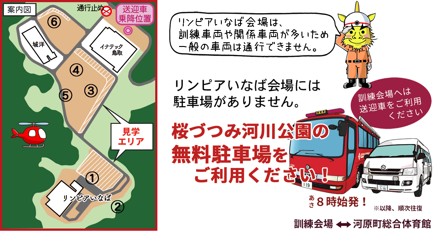 ‣指定された駐車場以外の周辺の駐車場には、訓練車両や関係車両が駐車しますのでご注意ください。